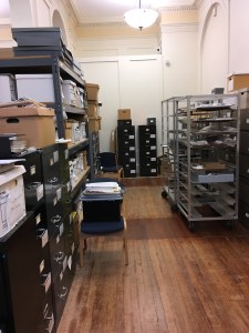 IMG_0178 Previous arrangement of the archives storage area: mostly filing cabinets and boxes piled on top.