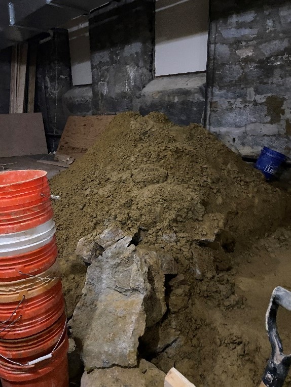 All the drywall on the exterior walls have also been removed to address any small leaks in the foundation. Personally, I love the exposed foundation walls and was excited to learn that this appearance will be maintained.