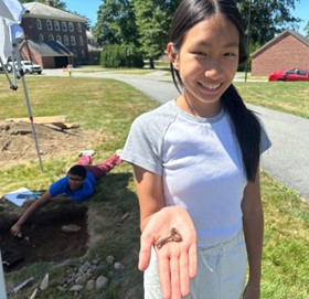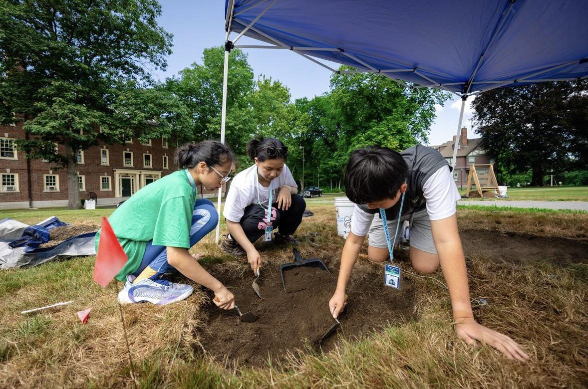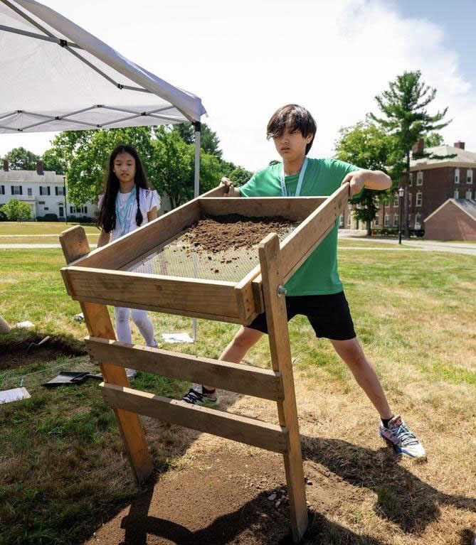 Almost every summer since 2016, young archaeologists from Phillips Academy’s summer session program embark on a mission to excavate the site of the eighteenth century Samuel Philips Jr. Mansion House, located on the West Quad of campus. The infamous Mansion House was built in 1782 by the academy’s founder and stood for 105 years, before burning down in 1887. News articles from the period suggest that the demise of the Mansion House was a result of arson; many speculating that the proprietor, Charles Carter, started the fire. During its long period of occupation, the Mansion House served as not only a home, but later an inn and tavern for students, community members, and travelers. The site’s long history and relatively undisturbed context creates an ideal setting for archaeological excavation and student learning.