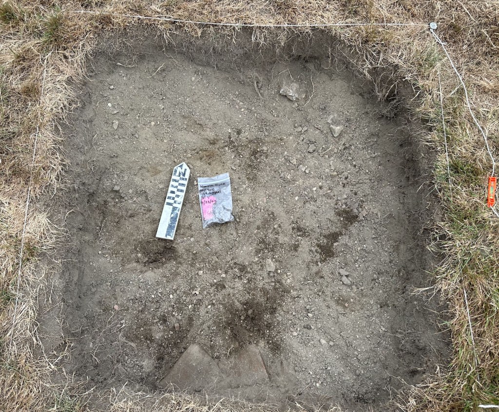 Students excavating the other four units in the northern portion of the quad found shallow cultural layers followed by a sterile C horizon, between 20 and 35 cm. While the artifact density of these units was limited, students still enjoyed finding an abundance of brick, metal nails, and some small ceramic fragments. The very shallow deposits found in these units informed the team that no building activity likely occurred in these areas. Additionally, the relatively low artifact density suggests that these areas were not regularly used like in a dooryard or garden area.