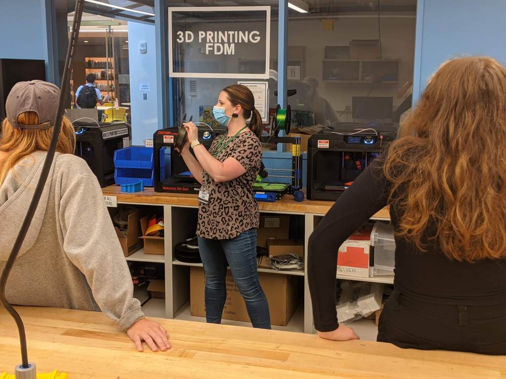 Makerspace guru Claudia Wessner introduces Human Origins students to 3D printing.