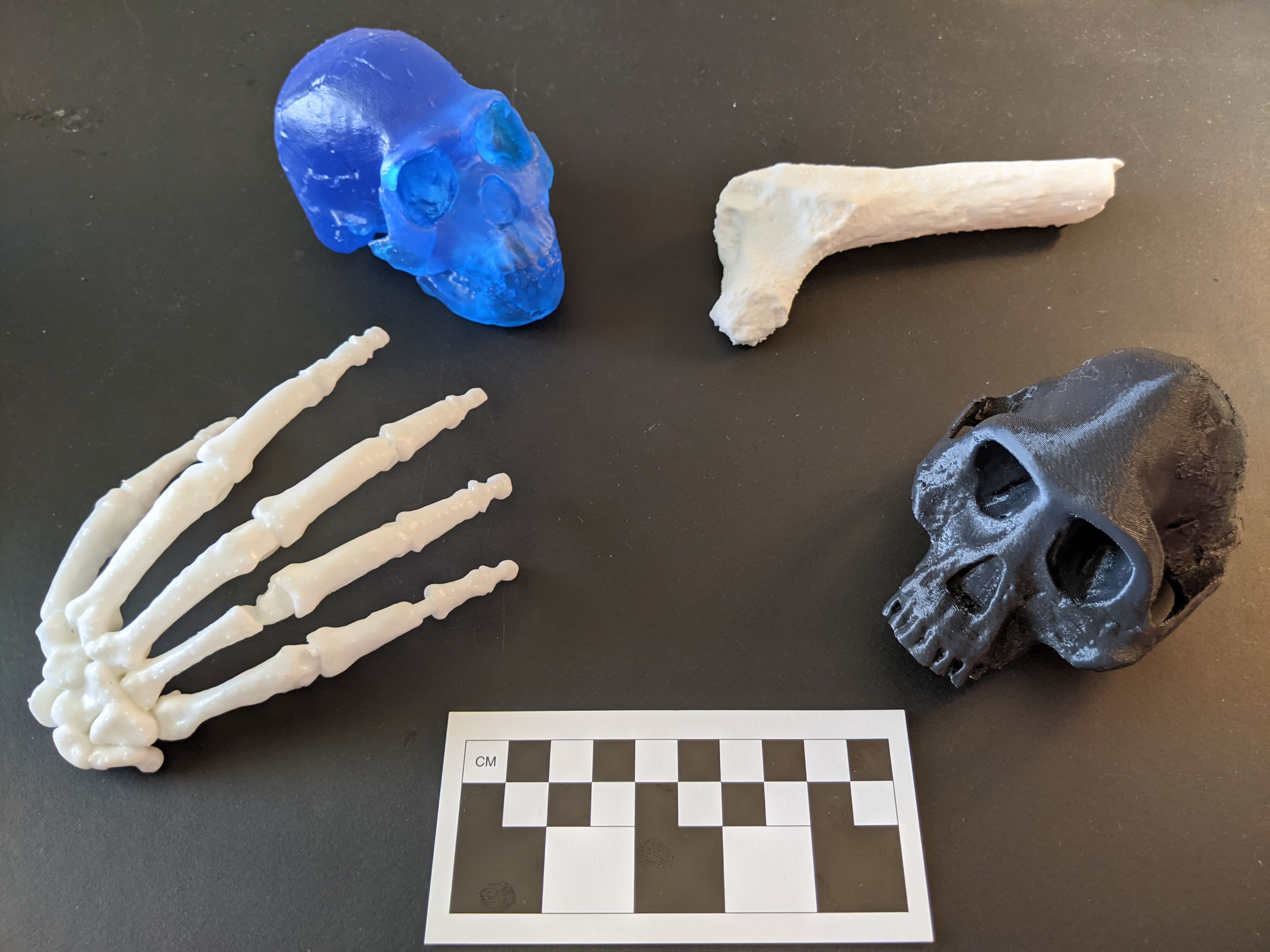 Each project team will select a fossil hominin to 3D print in the Makerspace. Hominins are humans and their close extinct ancestors, including fossils dating back about 6 to 7 million years ago. Students will present their scaled prints, along with basic info on the fossil, during class in a few weeks. This project was inspired by the inclusion of 3D scans of Homo naledi in Morphosource, a database of 3D scans of fossils and biological specimens hosted by Duke University. Since the Homo naledi scans were made available in 2015, many additional fossil scans have been added, including other hominins.