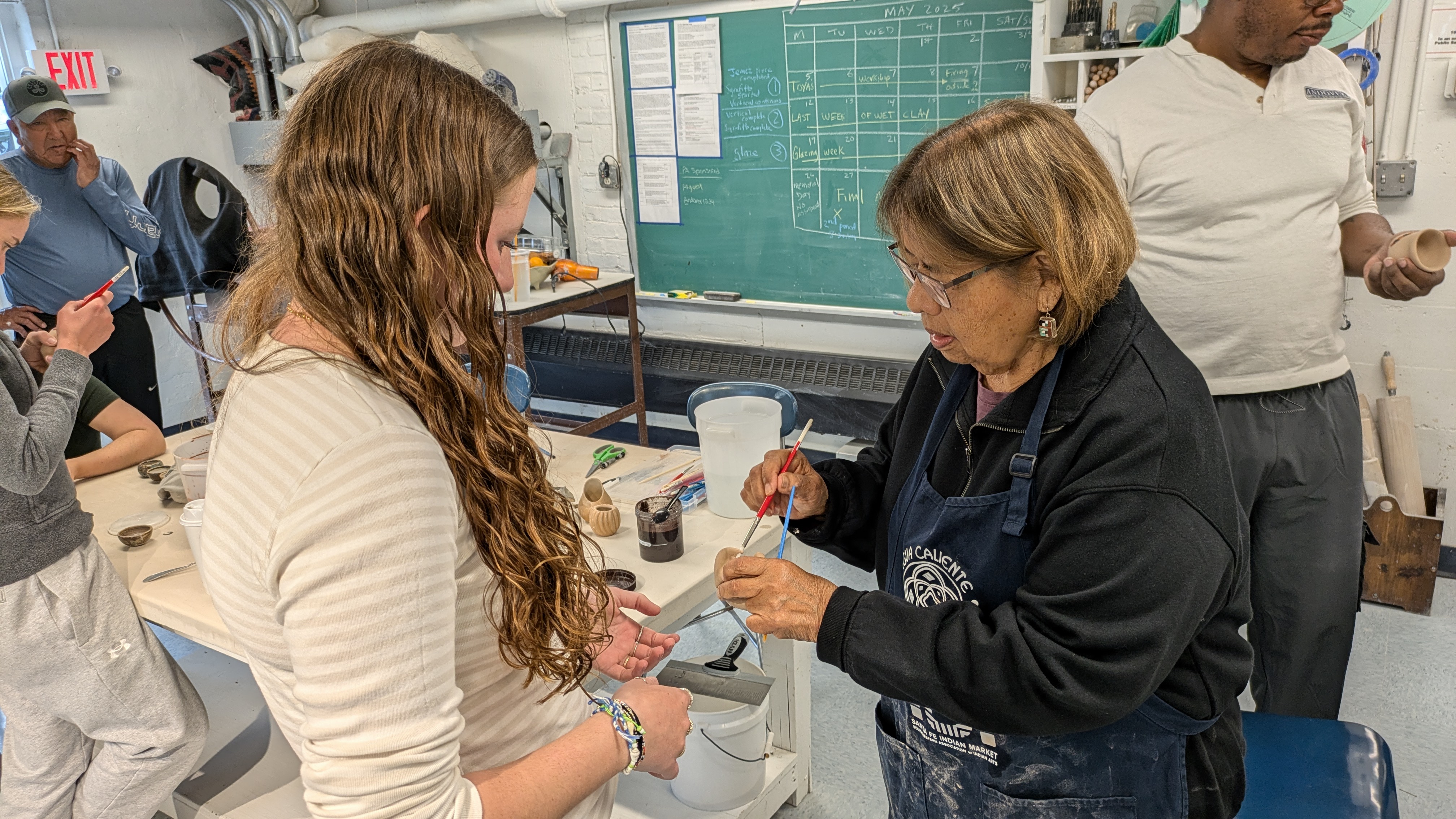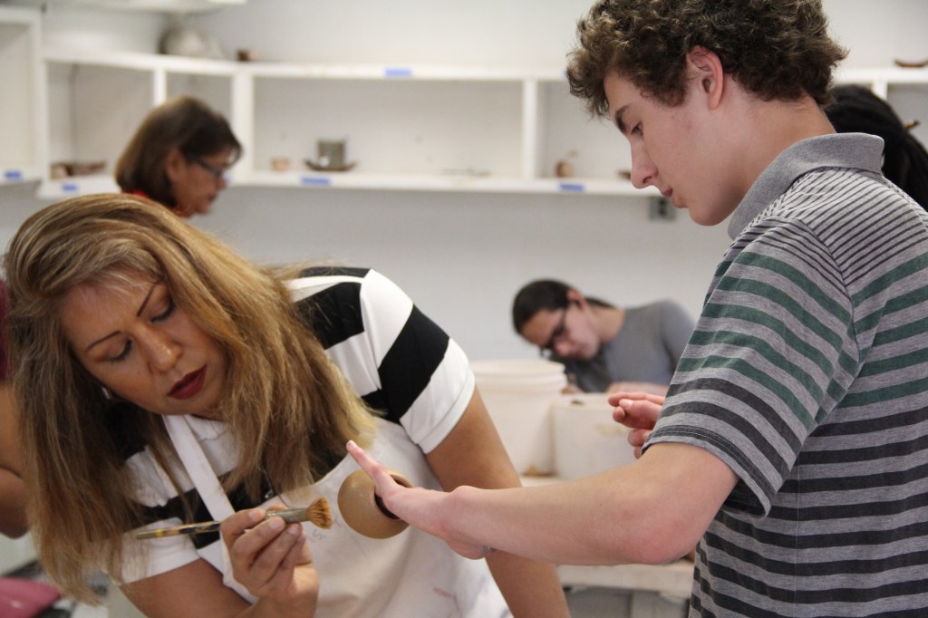 Ceramic students participating in pottery-making workshops