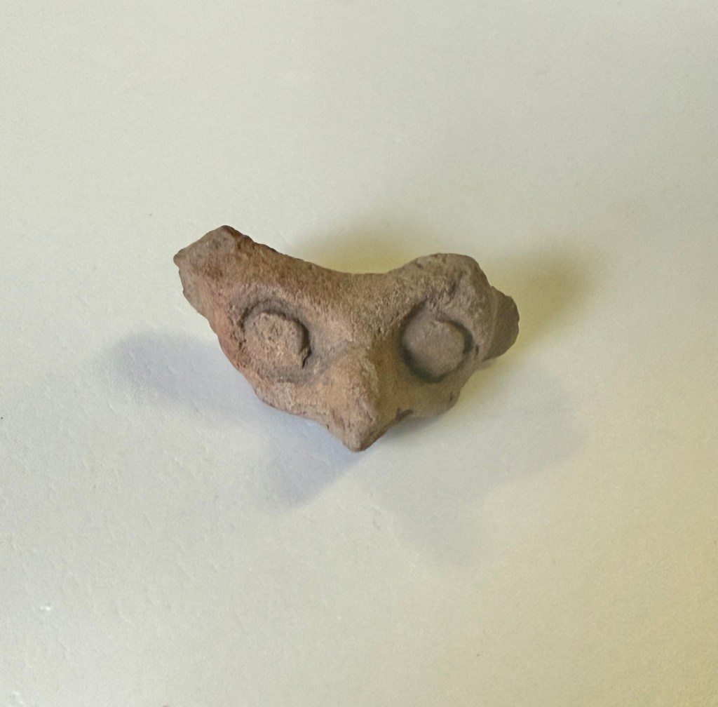 Owl Effigy (2018.2.1266) – Fragment of an owl effigy from the Valley of Mexico. Warren K. Moorehead compared this item to clay effigies from the Etowah village site in his 1932 book Etowah Papers: Exploration of the Etowah Site in Georgia.