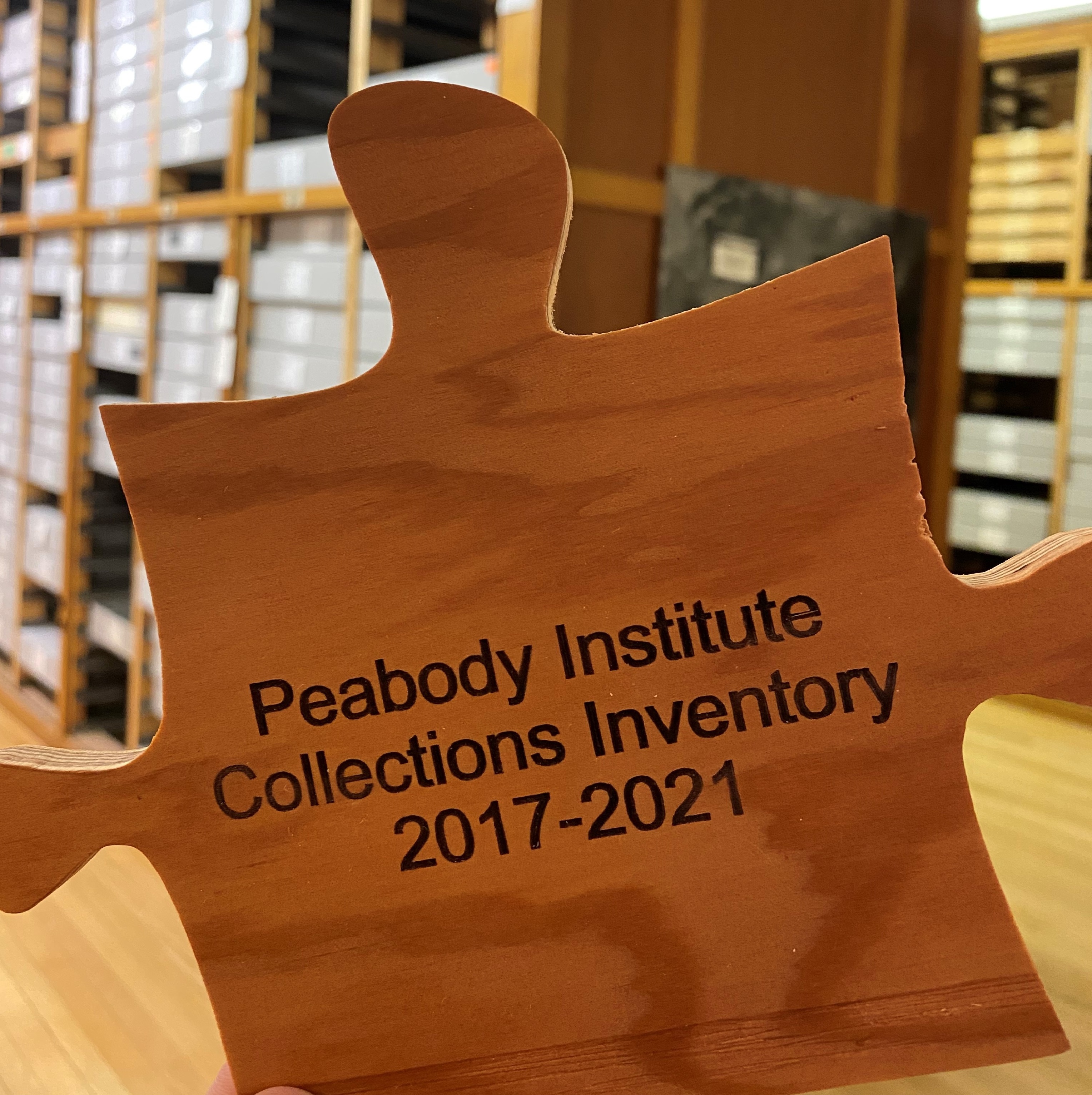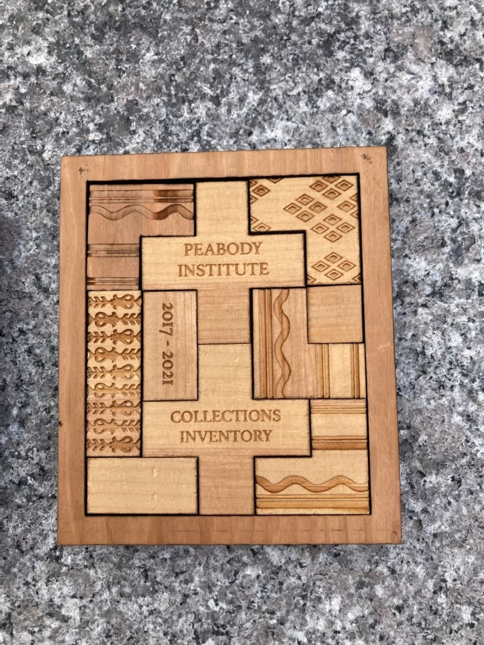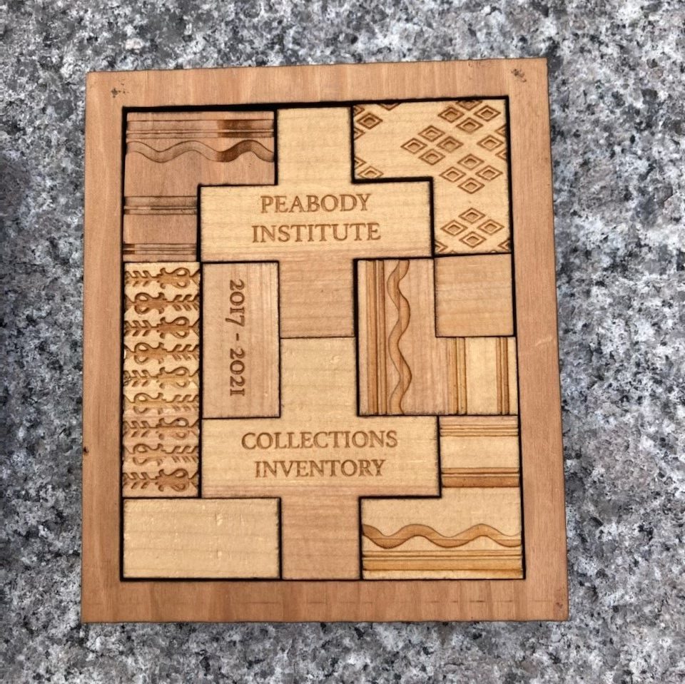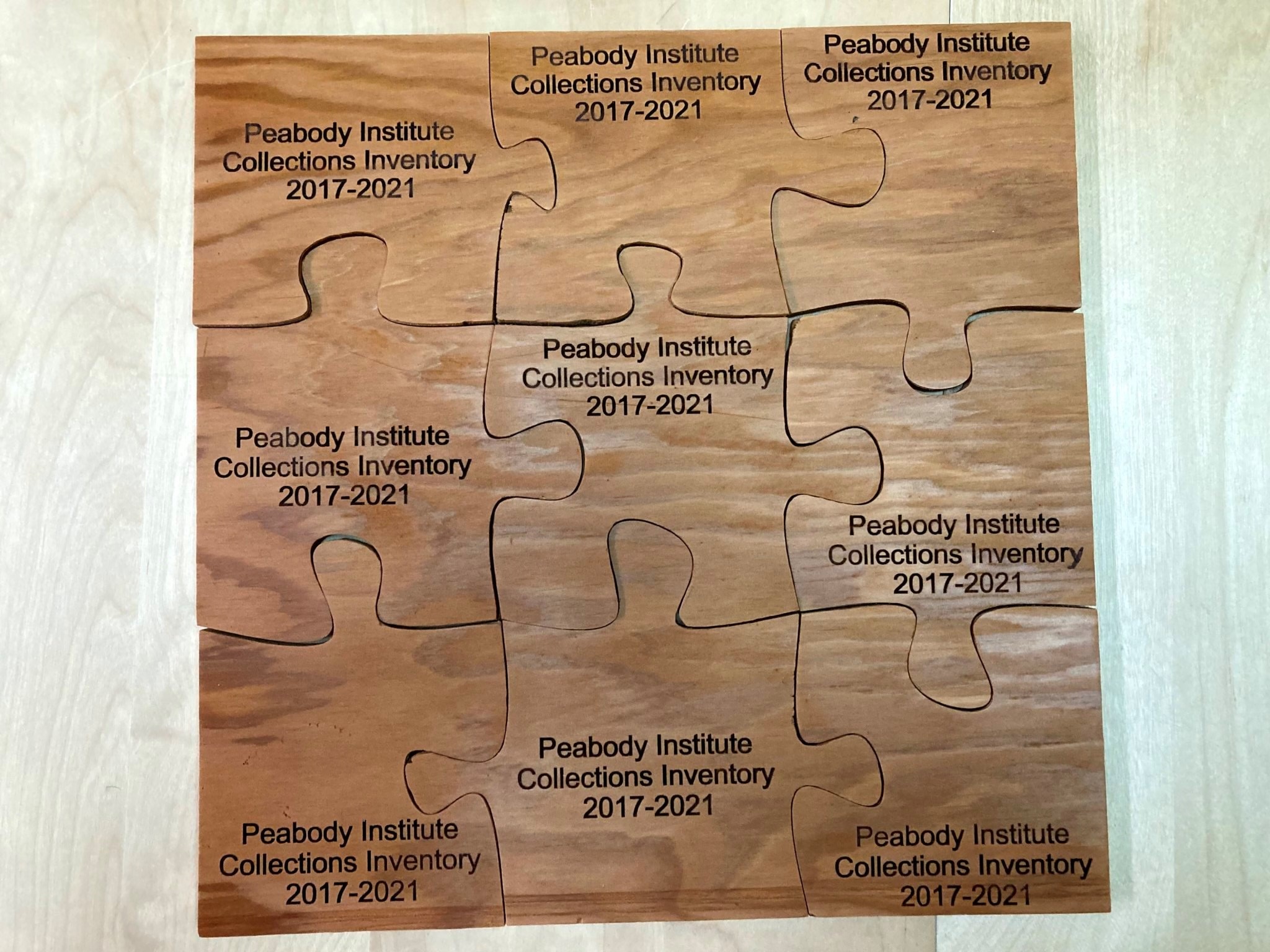 To commemorate the Peabody’s Inventory completion and thank donors, staff, and volunteers who played a role in the process, puzzle pieces were created from drawers by Get On Board – Signs and More as well as puzzle boxes by the Makerspace at the Oliver Wendell Holmes Library (OWHL) on Phillips Academy Andover campus.