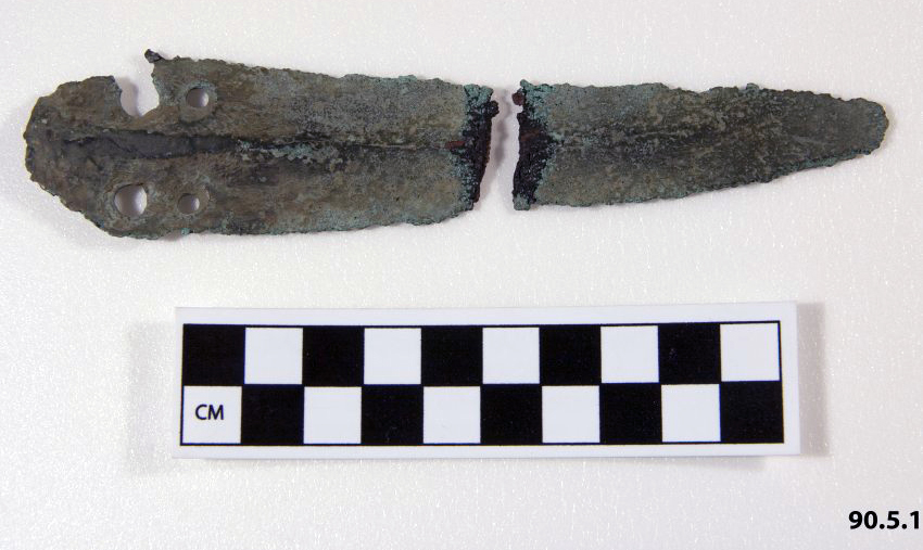 The object in question is a copper dagger or knife and is pictured in Frederick Pohl’s 1961 book Atlantic Crossings before Columbus. Barry Fell also discussed the piece in his popular 1976 book America BC: Ancient Settlers in the New World. Both authors contributed extensively to the literature on connections between Europe and the Americas, often featuring Vikings; mainstream archaeology has dubbed Pohl, Fell, and allied writers as pseudoscientists who offer provocative theories, but little concrete or testable evidence.